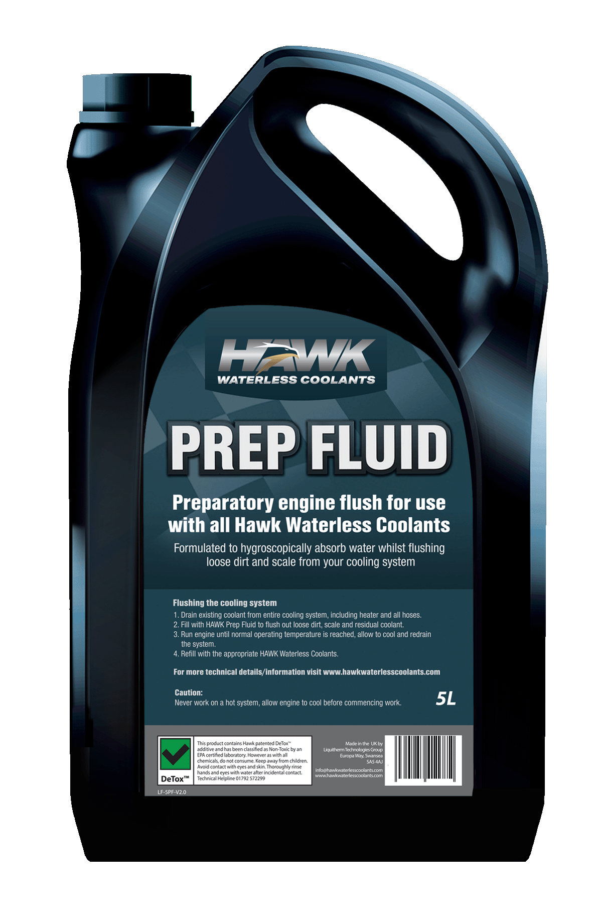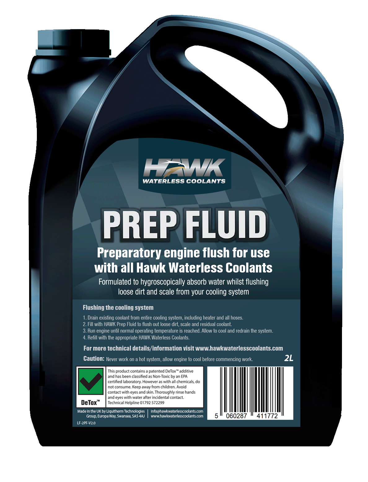 HAWK Prep Fluid is hygroscopisch en ontwikkeld om water op te nemen, terwijl het achtergebleven los vuil en vlokken uit het koelsysteem spoelt, voordat het gevuld kan worden met HAWK waterloze koelmiddelen.